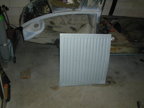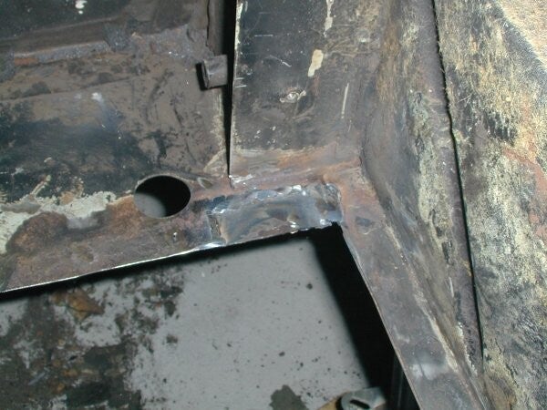 Hier is een overzicht van de beschadigde plek; de randen van de oude kofferbodem zijn nog duidelijk zichtbaar.