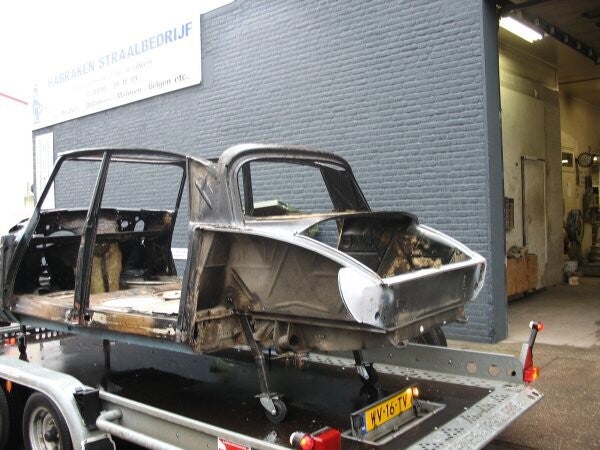 De lak zal worden verwijderd door stralen, waarna ze wordt behandeld met een laag epoxylak en twee lagen hoogglans zwarte autolak.