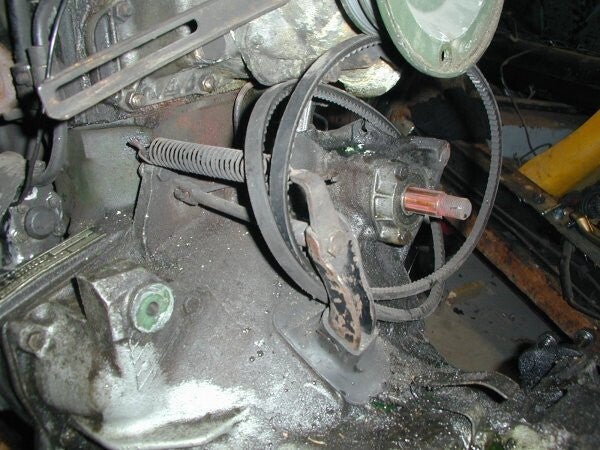 Het uitzicht na het verwijderen van de poelie.