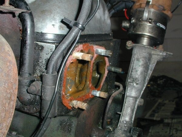 Er is nogal wat geoxideerd aan de waterpomp.