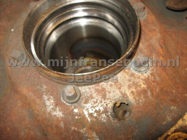 De remtrommel is verwijderd, de borging op beide moeren moet terug worden geslagen.