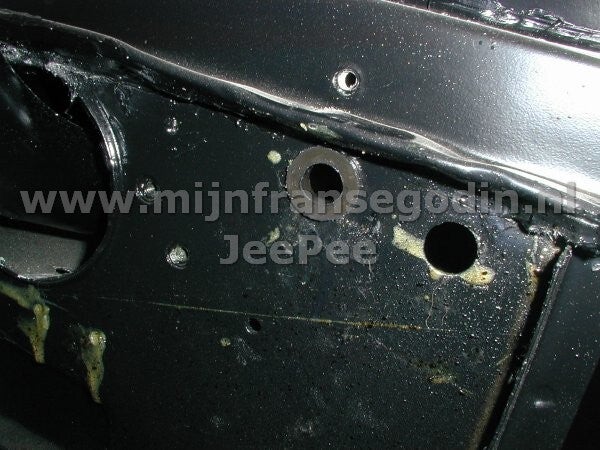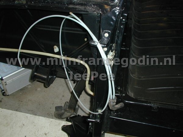 Nieuwe rubbertjes aangebracht voor de doorvoer van de ontluchtingslang, hieronder een aanzicht vanuit de wielkap rechtsachter.
