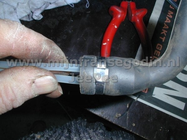 De nieuwe slang is weer aangebracht in de rubber onderdelen.