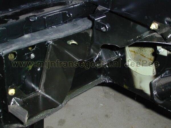 De beugel voor de rechter flexibele remleiding zit er weer op.