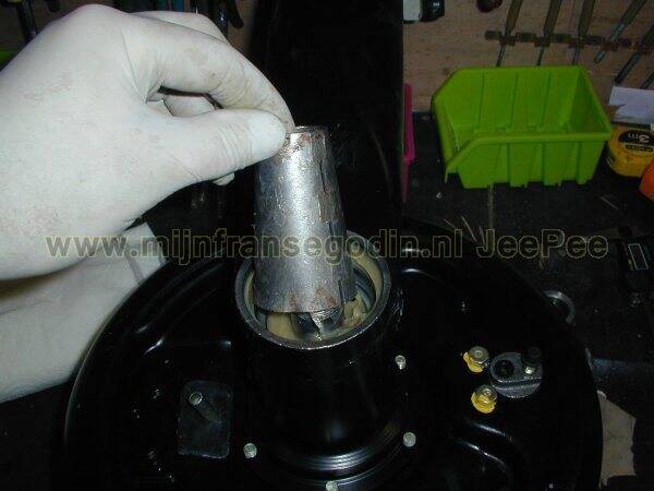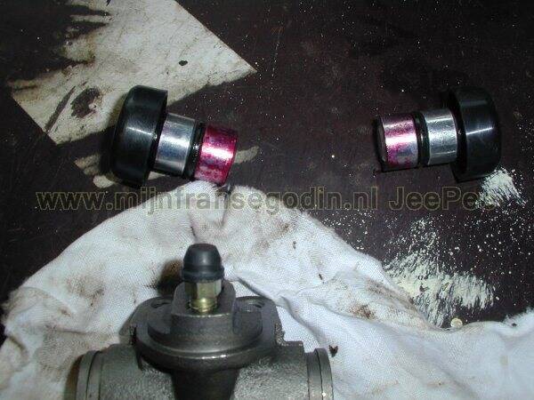 Voor de montage worden de nieuwe remcilinders zorgvuldig gereinigd in benzine, zodat alles perfect schoon is.