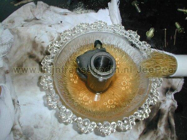De cilinder zelf wordt ook in de benzine schoon gemaakt.