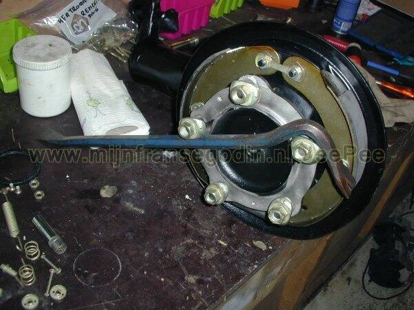 Het complete plaatje is bijna af! De remschoenen moeten alleen nog gecentreerd worden. Hiervoor moet nog een speciaal stukje gereedschap worden gemaakt.