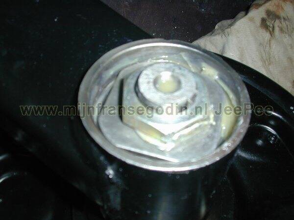 Hieronder aangebracht en tevens is de veer gemonteerd.