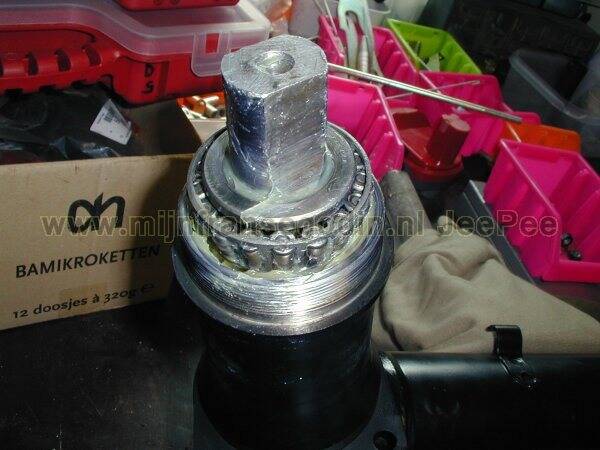Voordat het buitenste lager wordt aangebracht gaat er ongeveer 50 gram lagervet in.