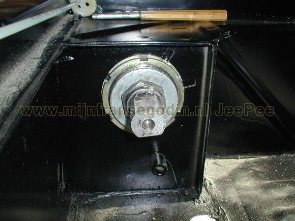 Aan de binnenkant van de kofferruimte is de ring aangebracht en geborgd.