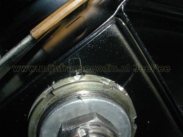 De moer wordt aangebracht en stevig aangedraaid, vervolgens iets losgedraaid en geborgd (zie rechterzijde).