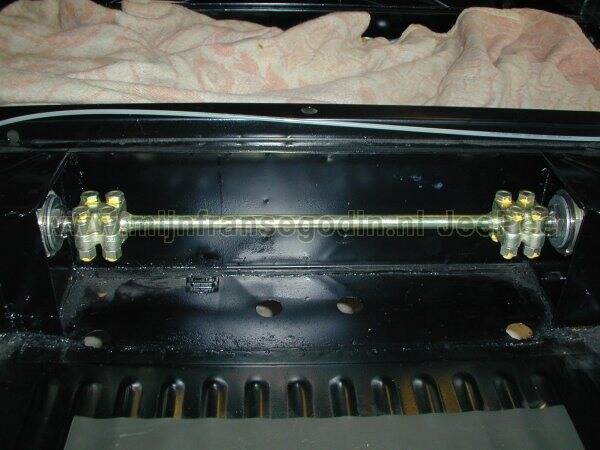 De achterste torsiestang wordt tussen beide assen gemonteerd.