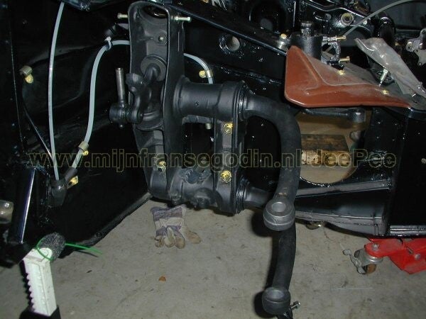 De stang wordt keurig in de linker chassisbalk geplaatst.