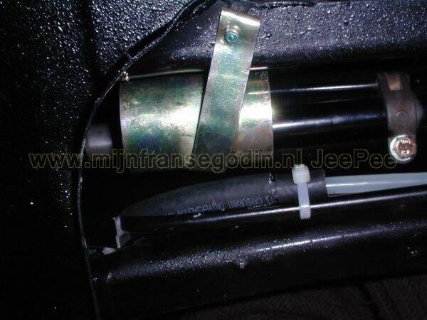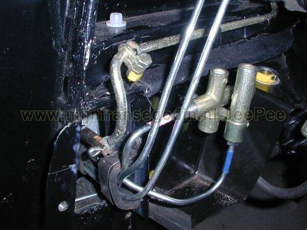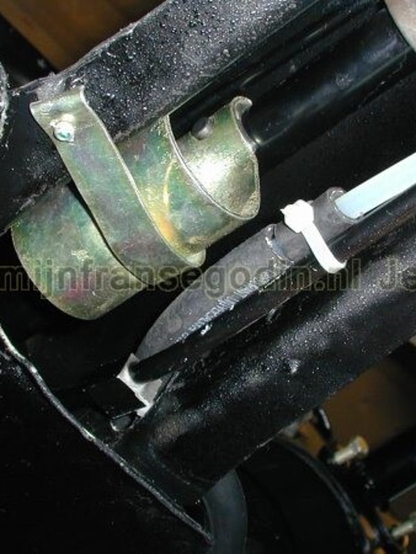 De beugel die gestraald was is nu goed zichtbaar, een rubber beschermd de leidingen.