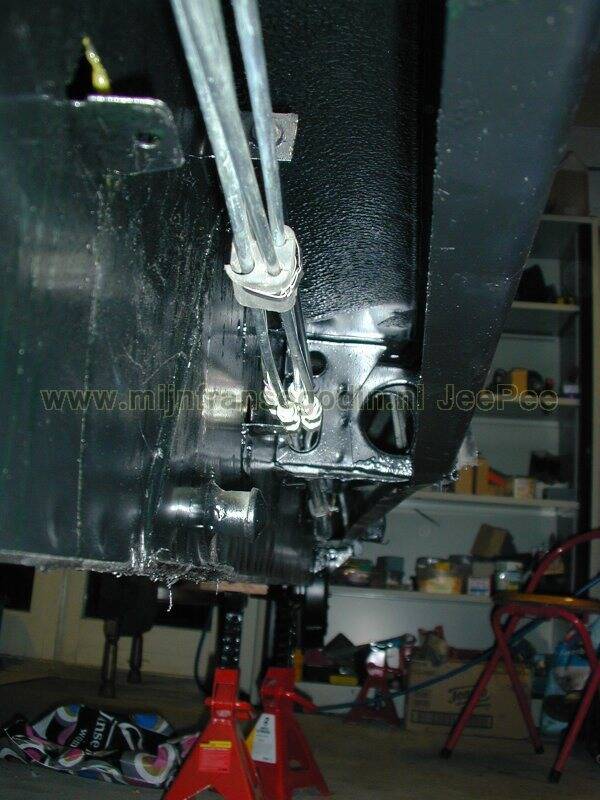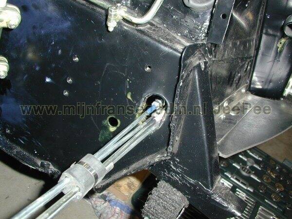 De leidingbundel wordt vanaf de voorzijde in de linker chassisbalk geschoven ( het achterste exemplaar uiteraard via de achterzijde).