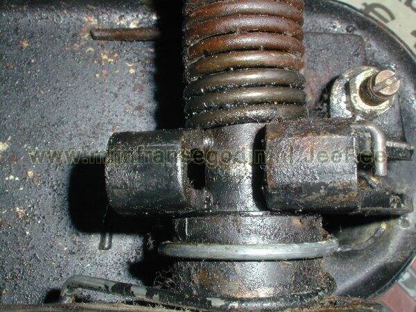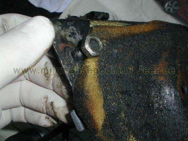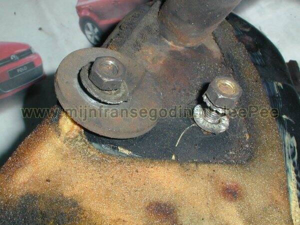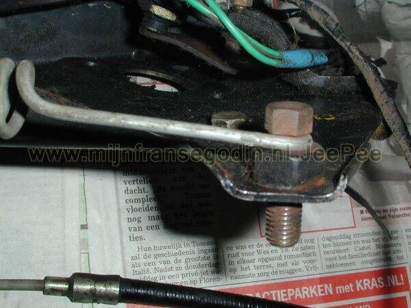 Detail van de bout waar de veer aan is bevestigd voor het koppelpedaal.