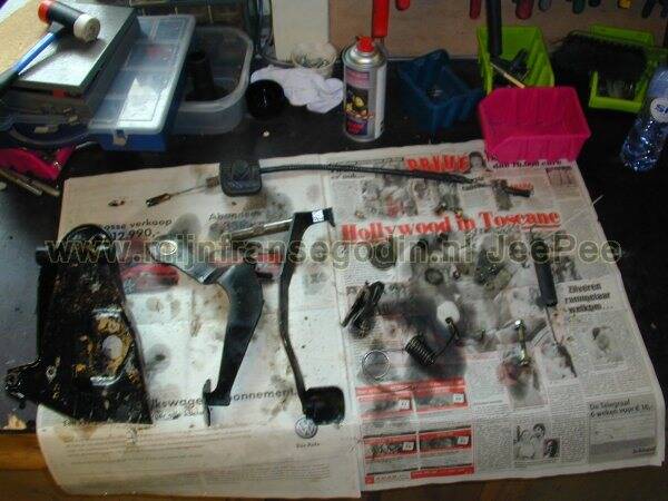 Als je alles zorgvuldig demonteert, ontdek je vaak kleine slijtageplekken die anders onopgemerkt blijven. Een goed voorbeeld hiervan is de veer van het koppelingspedaal.