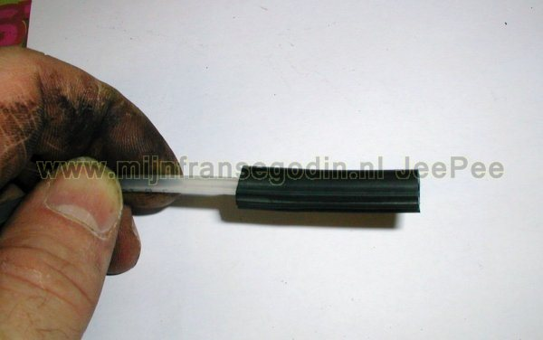 Alle drie de leidingen worden voorzien van een schuifstukje, dat zorgvuldig in het rubber wordt geplaatst.