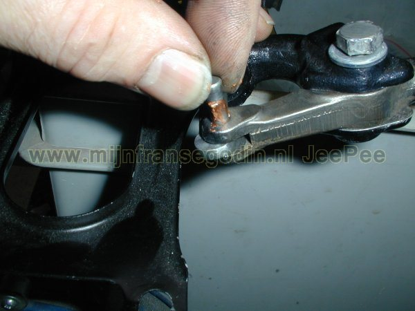 Aan de andere kant wordt een onderdeel van de schakelstang geplaatst.